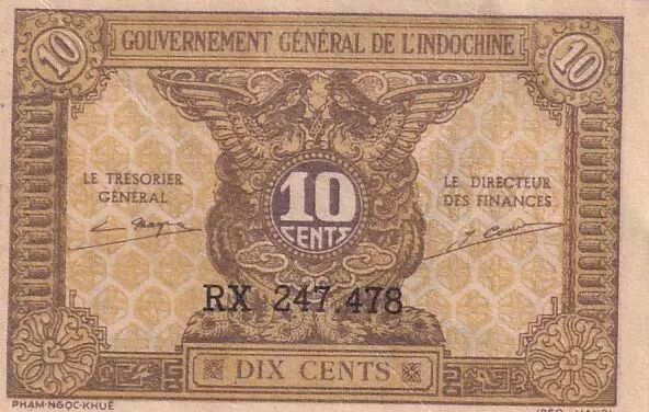 Accueil > Archivage > Indo-Chine Fr. 10 Cents - Brun - ND (1942) - Série RX - P.89a