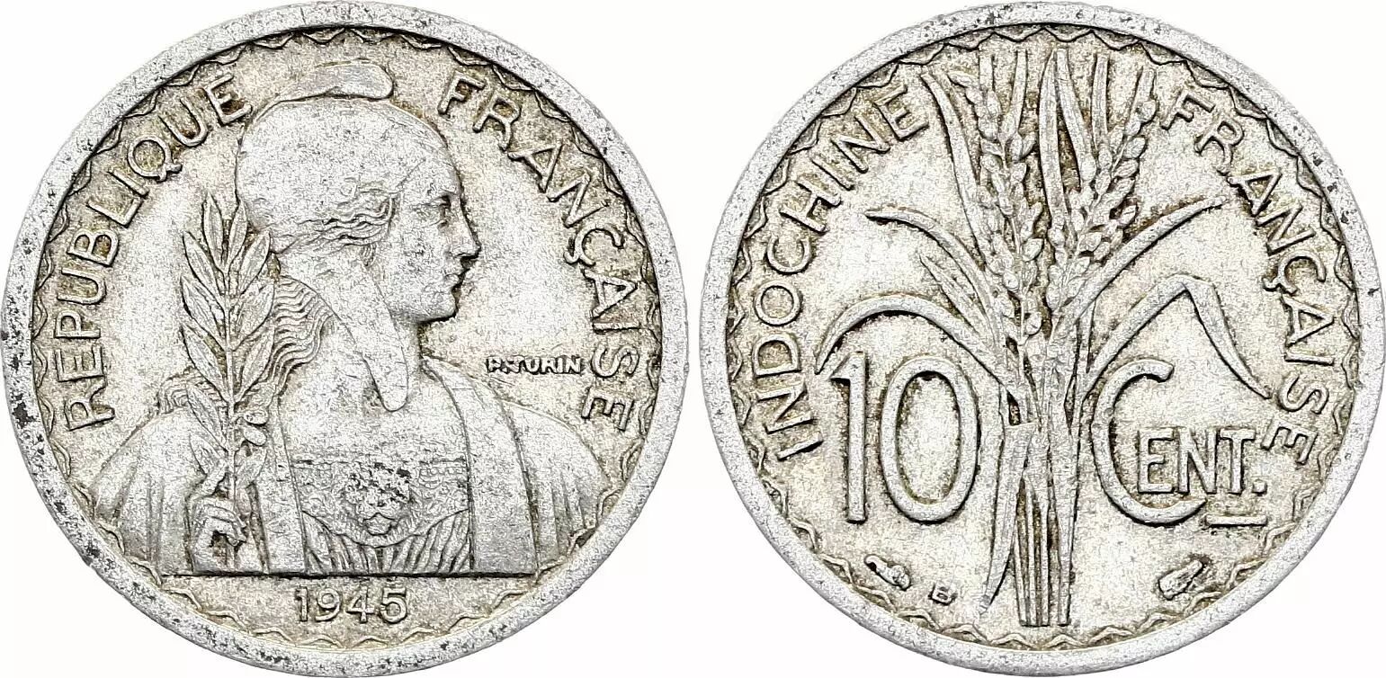 Accueil > Monnaies du monde > Monnaies d'Asie > Indo-Chine Française > Indo-Chine Fr. 10 Cents Marianne - Turin - 1945 - B Beaumont-le-Roger