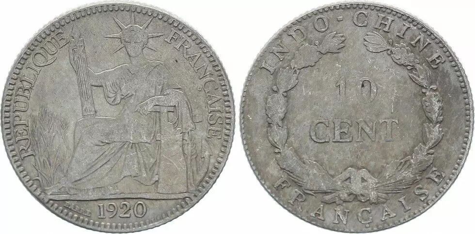 Pièce Indo-Chine Fr. 10 Cents République et Laurier - A-Paris - 1920