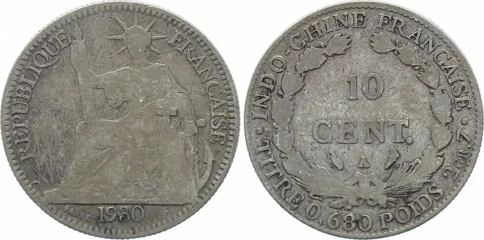Pièce Indo-Chine Fr. 10 Cents République et Laurier - A-Paris - 1931