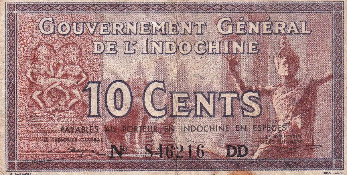 Billet Indo-Chine Fr. 10 Cents - Temple - Scène de village - ND (1939) - P.85d