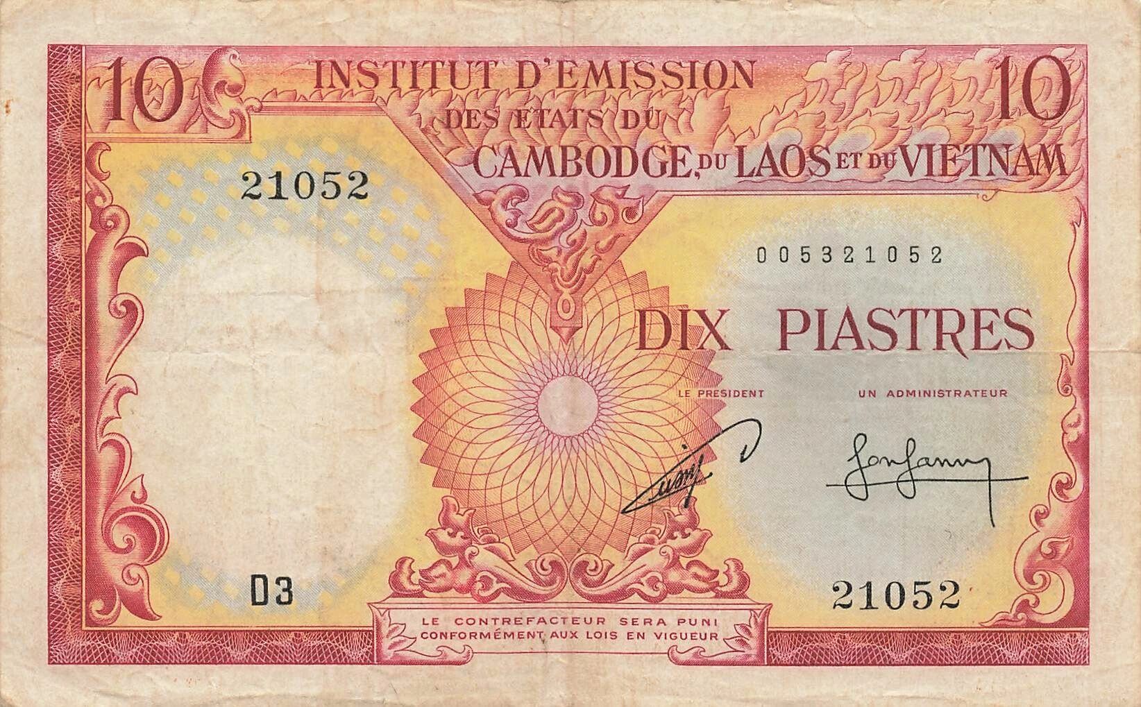 Billet Indo-Chine Fr. 10 Piastres - ND (1953) - Cambodge - P.96b