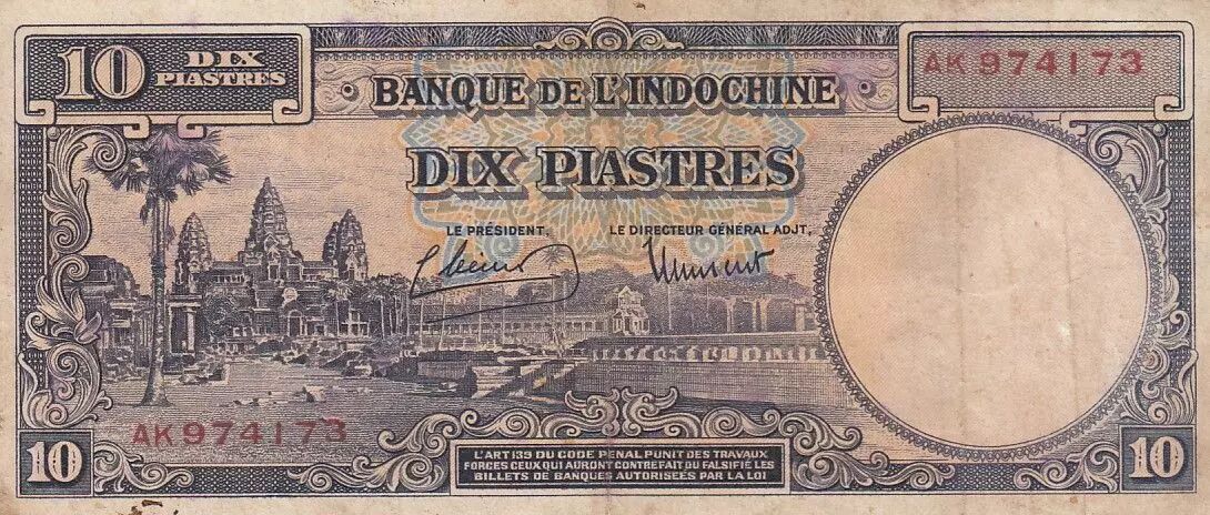 Accueil > Archivage > archivage-Billets Français > Indo-Chine Fr. 10 Piastres - Temple d'Angkor - 1947 - P.80