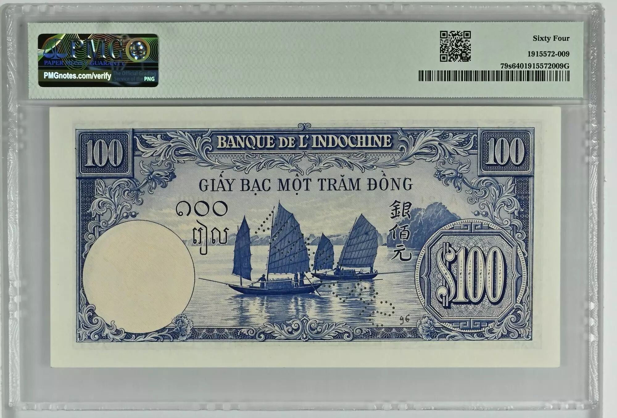 Billet Indo-Chine Fr. 100 Piastres - Banque - Bateau - Spécimen - Kol.186 - PMG 64