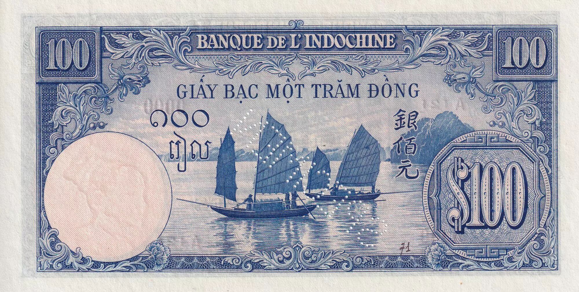 Billet Indo-Chine Fr. 100 Piastres - Banque - Bateau - Spécimen - NEUF - Kol.186
