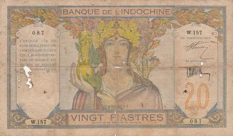 Billet Indo-Chine Fr. 20 Piastres - Ruines d'Angkor - 1928 - Série W.157