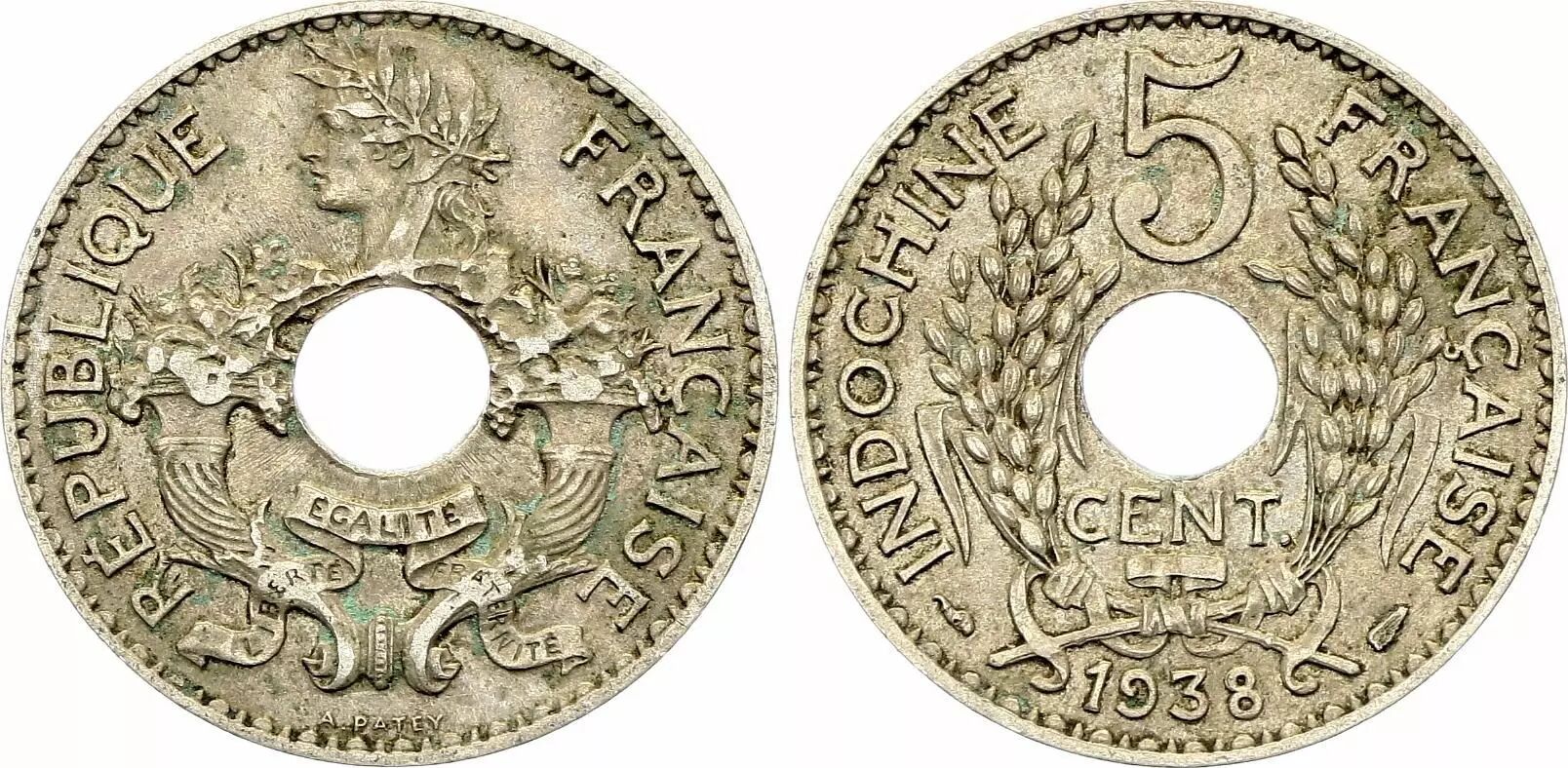 Pièce Indo-Chine Fr. 5 Centimes - République Française - Patey - 1938