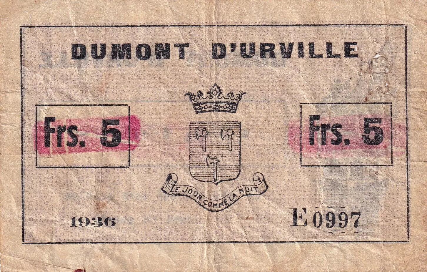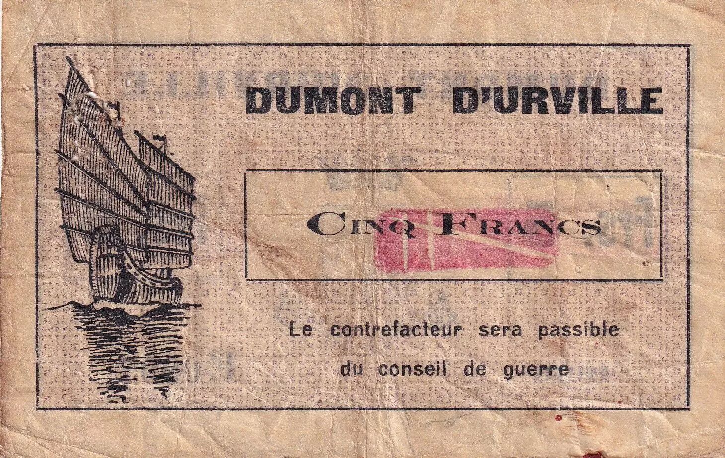 Accueil > Archivage > Indo-Chine Fr. 5 Francs - Dumont D'Urville - 1936 - E0997 - Kol.210
