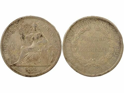 Pièce Indo-Chine Fr. Piastre de Commerce Argent, Type 2 - 1896 A Paris