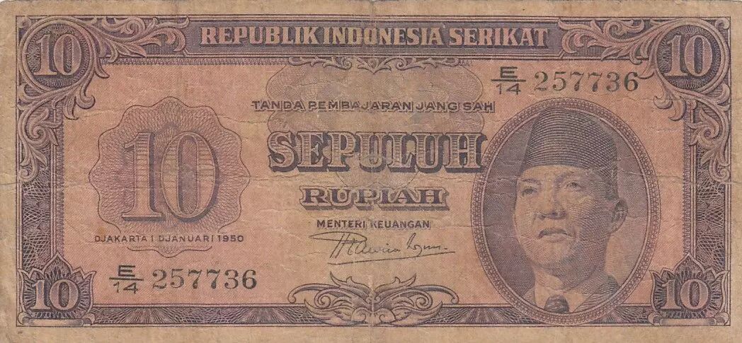 Home > World Banknotes > Asian Banknotes > Indonesia > Indonesia 10 Rupiah - Dr Soekarno - Rice field - 1950