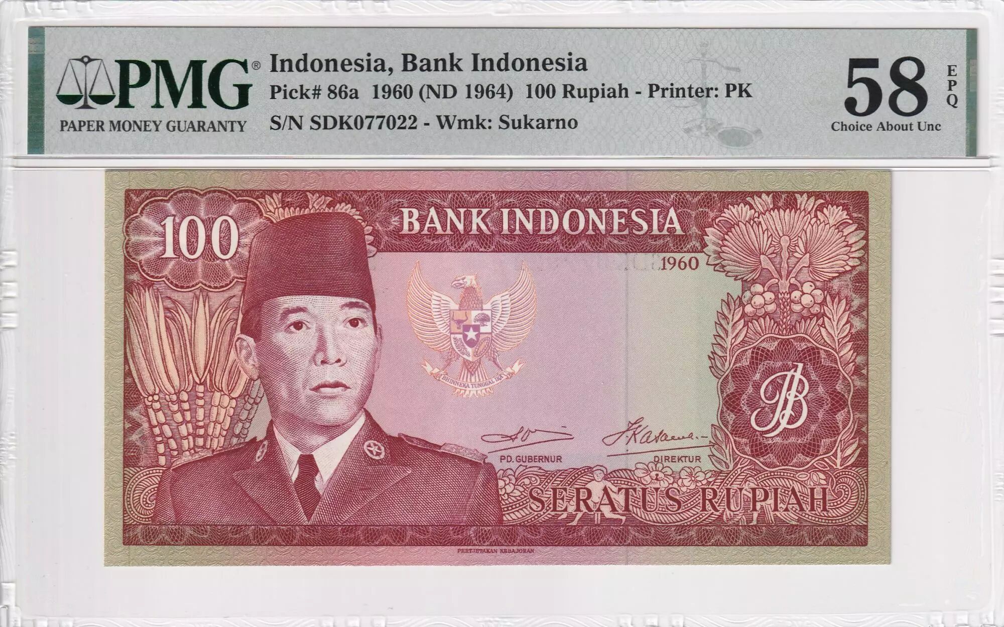 Home > > Indonesia 100 Rupiah Sukarno - 1960 - PMG 58 EPQ