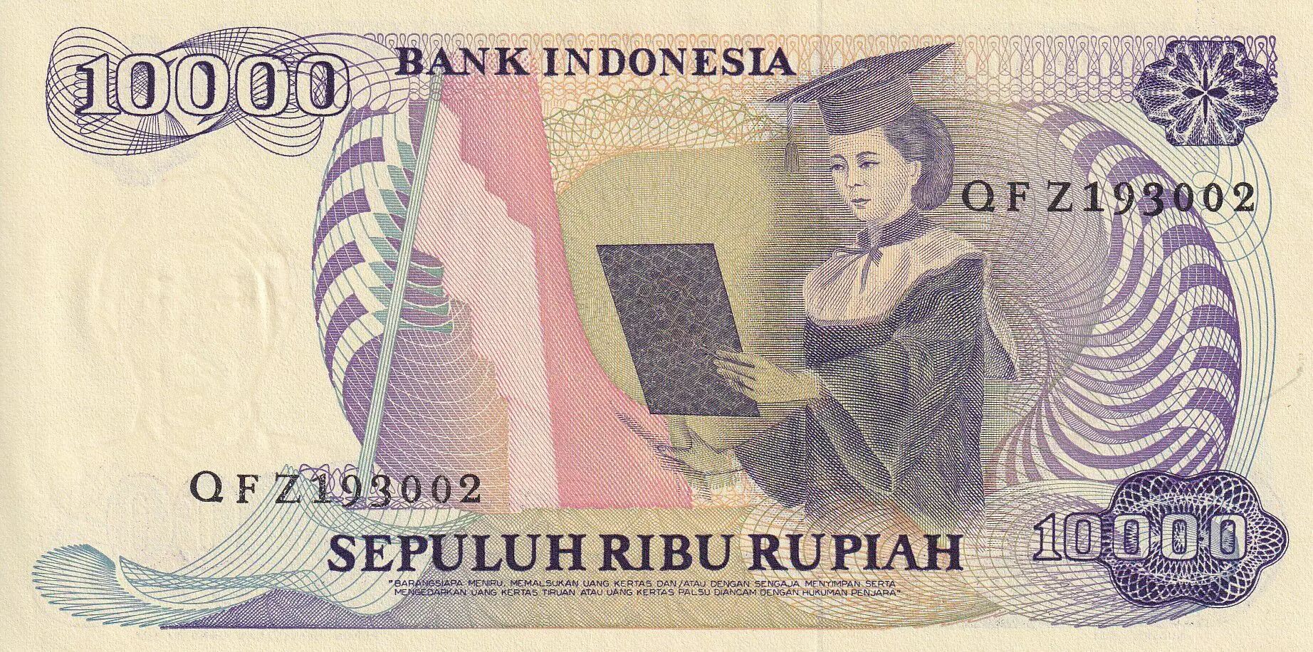 Home > > Indonesia 10000 Rupiah - R.A. Kartini - 1985 - Serial QFZ - NEUF - P.126