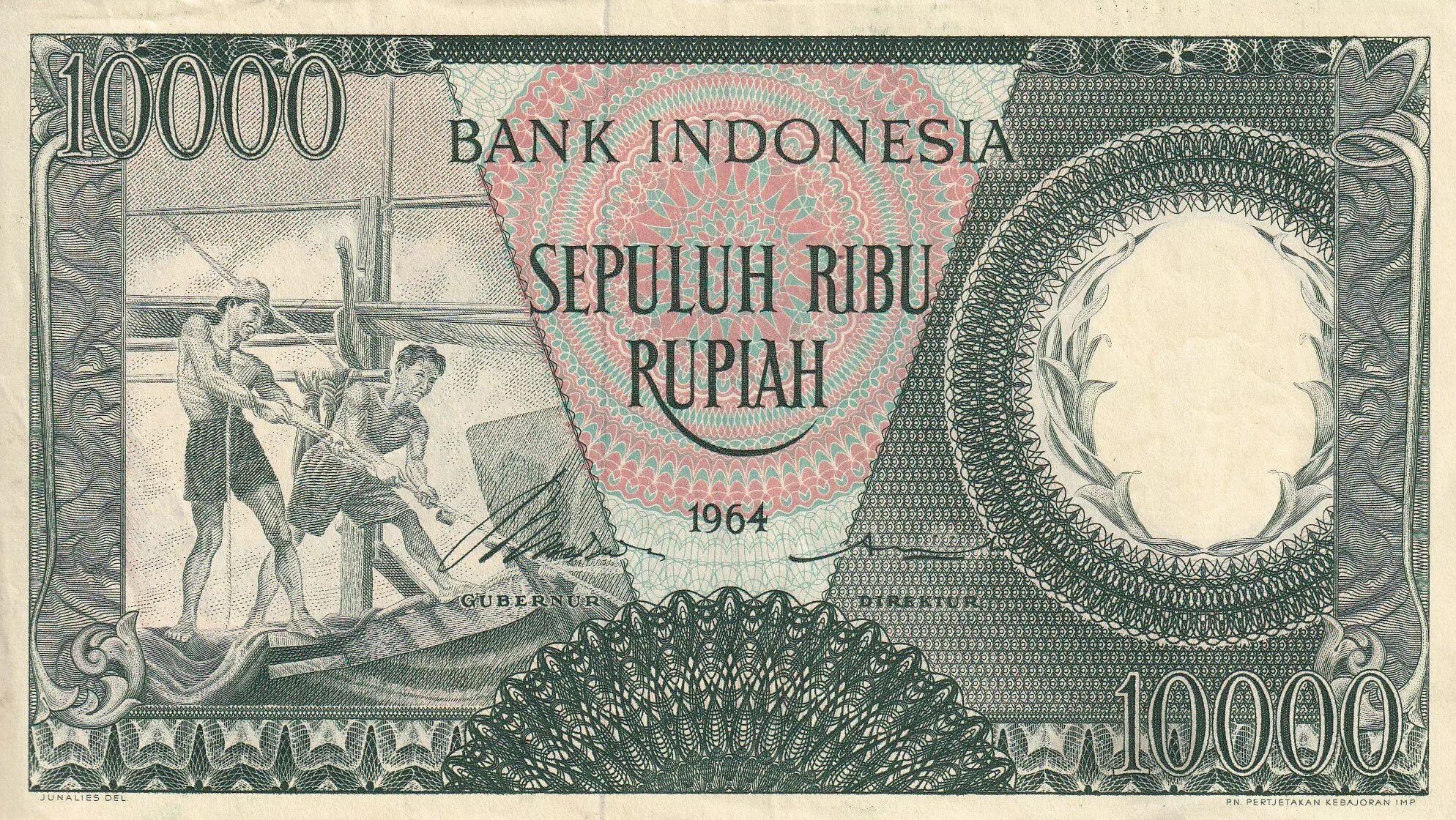 Home > > Indonesia 10000 Rupiah - Workers - River - 1964 - Serial EOJ - P.100a