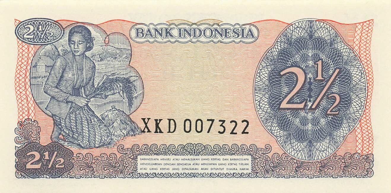 Home > World Banknotes > Asian Banknotes > Indonesia > Indonesia 2 1/2 Rupiah - 1968 - Remplacement - P.103