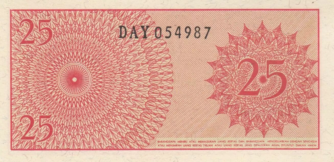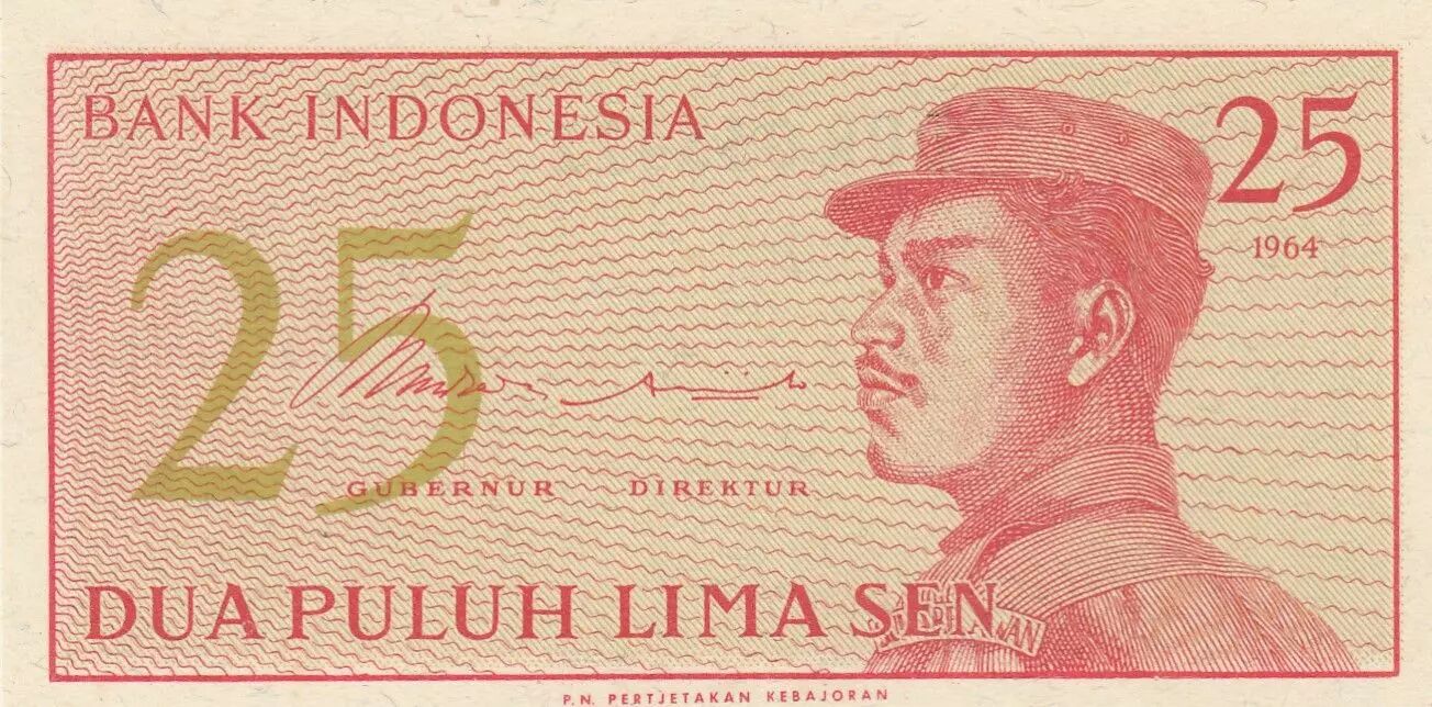 This banknote originates from Indonesia and was issued in 1964. It represents a face value of 25 sen. It is part of a special series issued by Bank Indonesia.