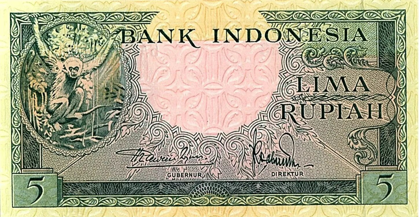 Home > > Indonesia 5 Rupiah, Oran-Utan - Prambanan temple - 1957 - P.49