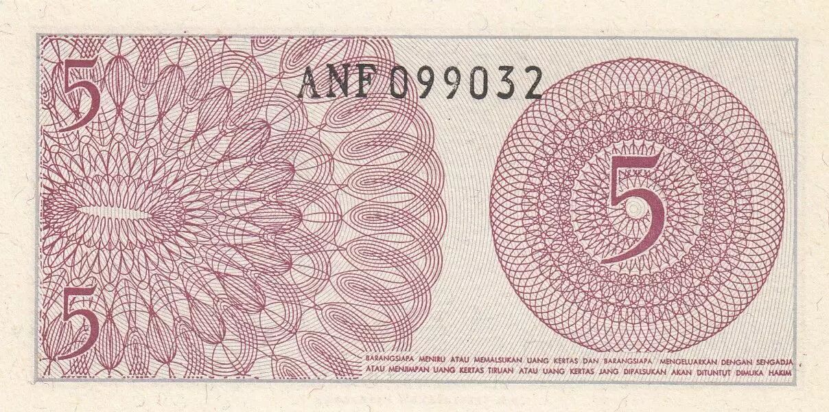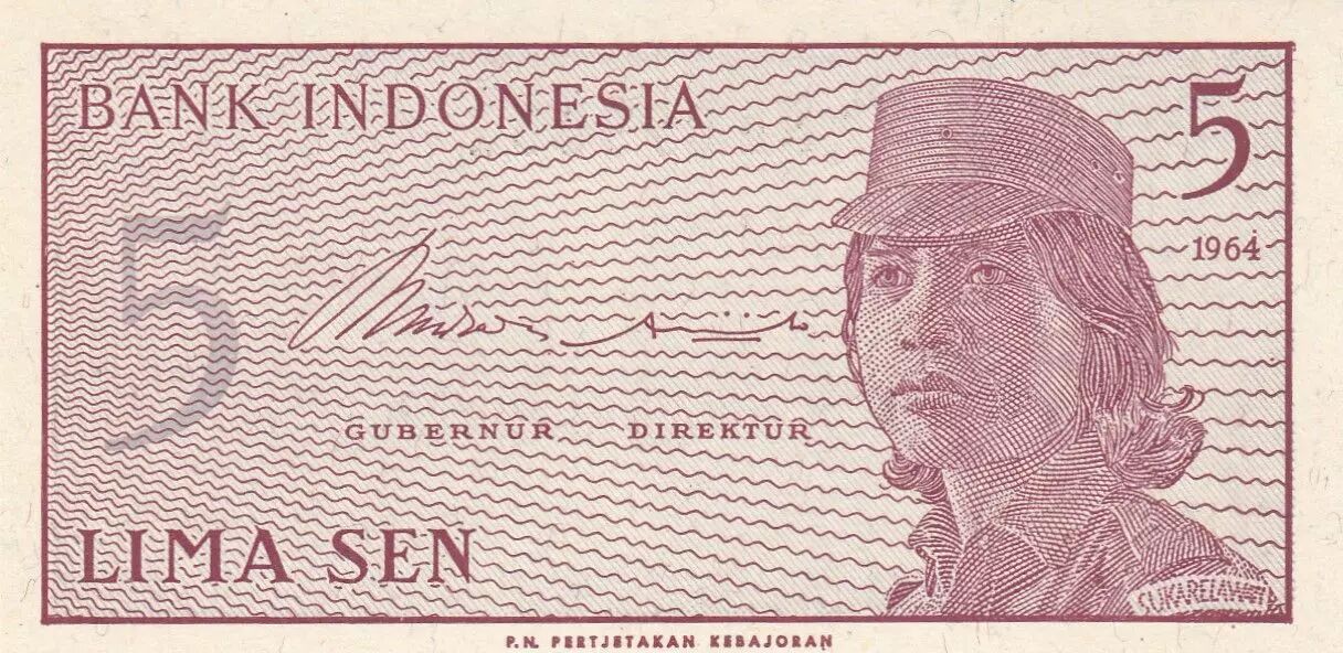 Home > World Banknotes > Asian Banknotes > Indonesia > Indonesia 5 Sen - Woman soldier - 1964 - Serial ANF