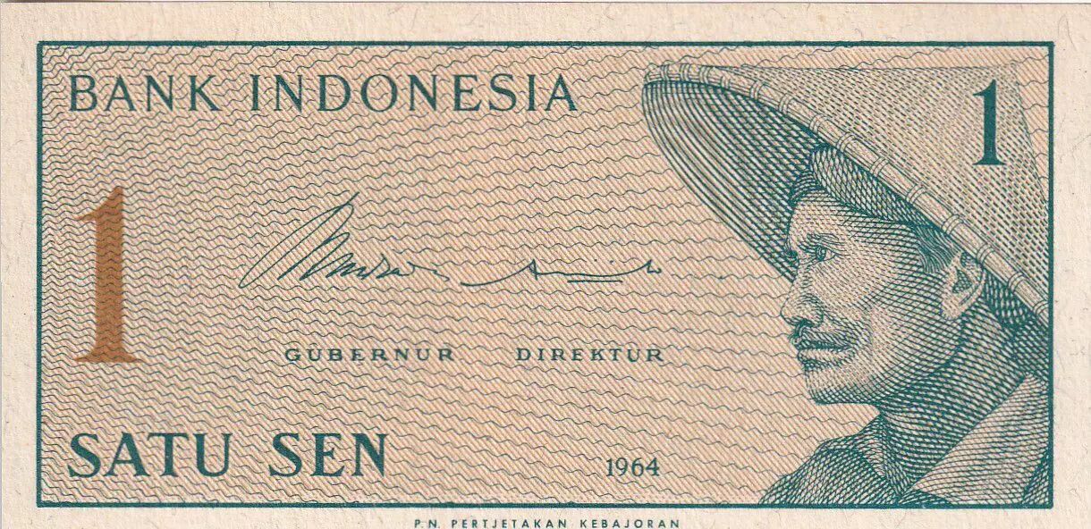 Billet Indonésie 1 Sen - Homme - 1964 - Séries variées - P.90a