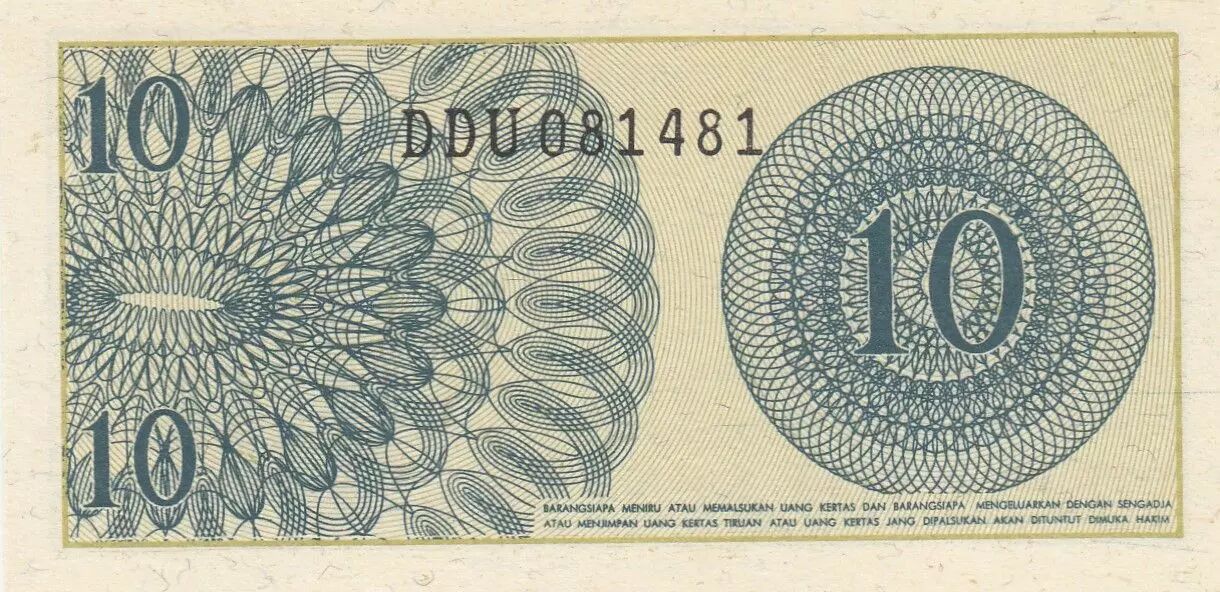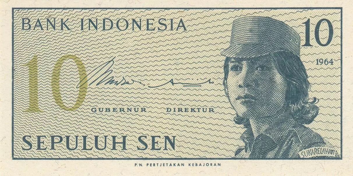 Billet Indonésie 10 Sen - Femme soldat - 1964 - Série DDU