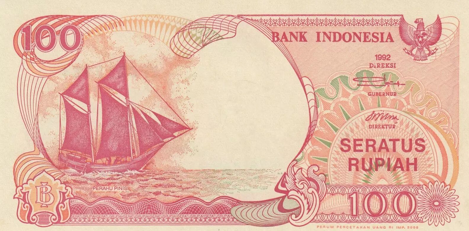 Accueil > Billets du Monde > Billets d'Asie > Indonésie > Indonésie 100 Rupiah - Voilier Pinisi - Volcan - 1992 (2000) - Série ZPB