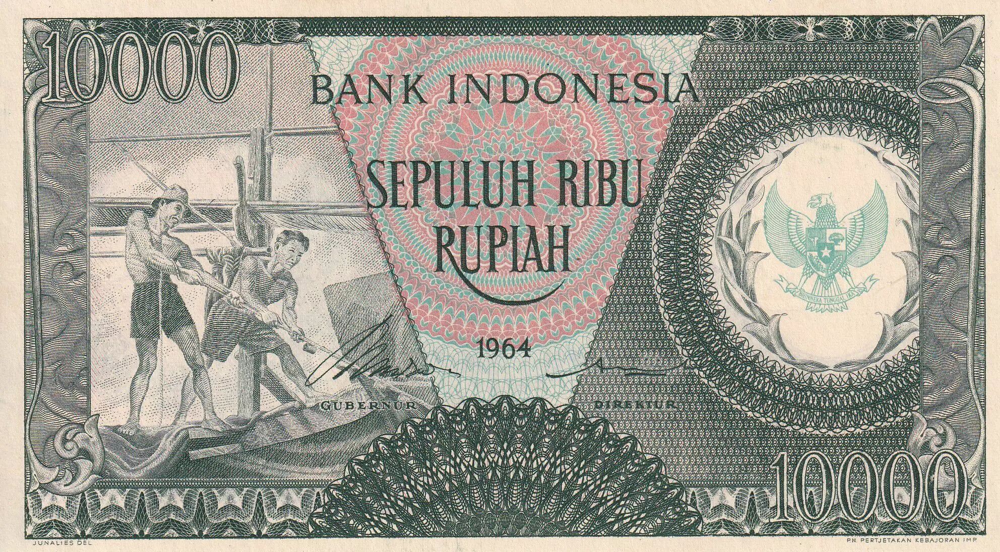 Billet Indonésie 10000 Rupiah - Travailleurs - Rivière - 1964 - Série MWY - NEUF - P.100b