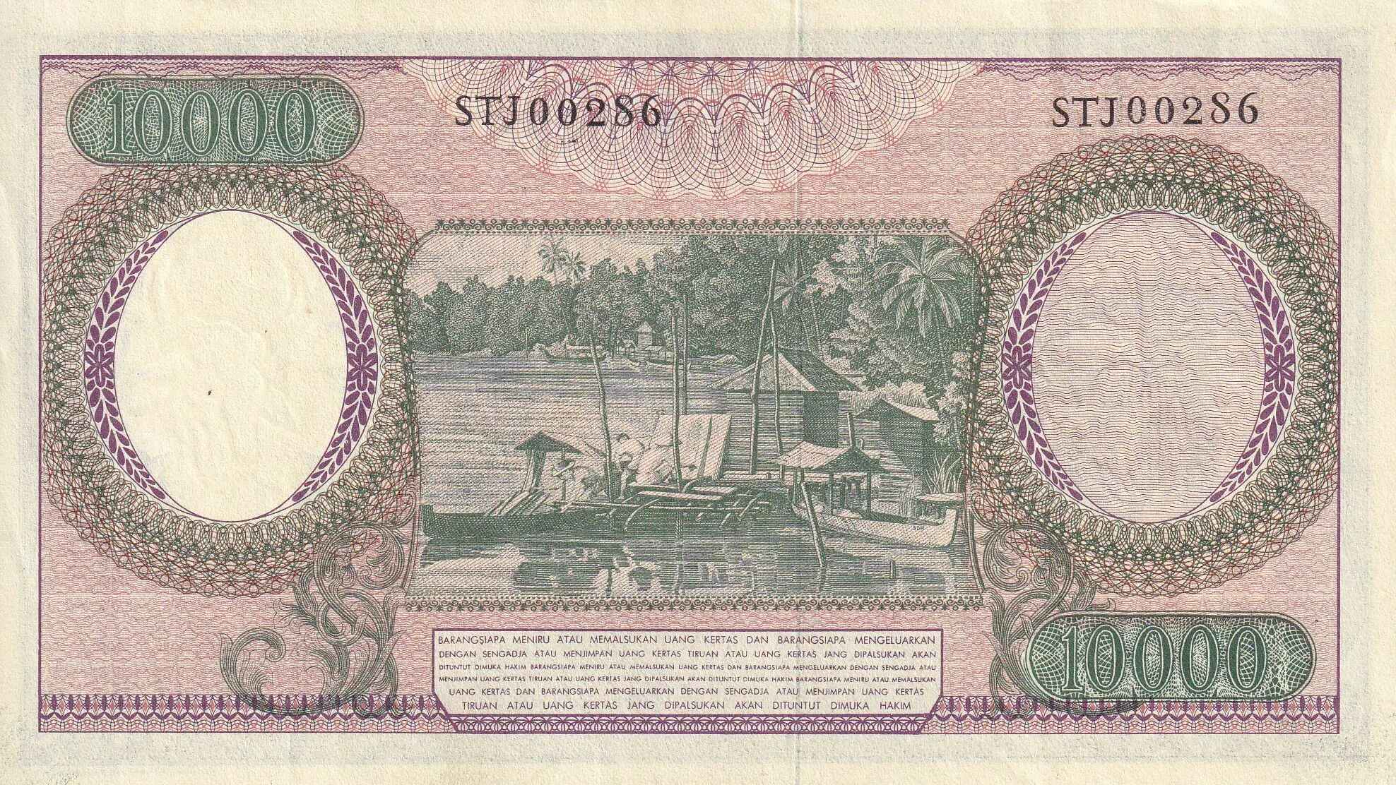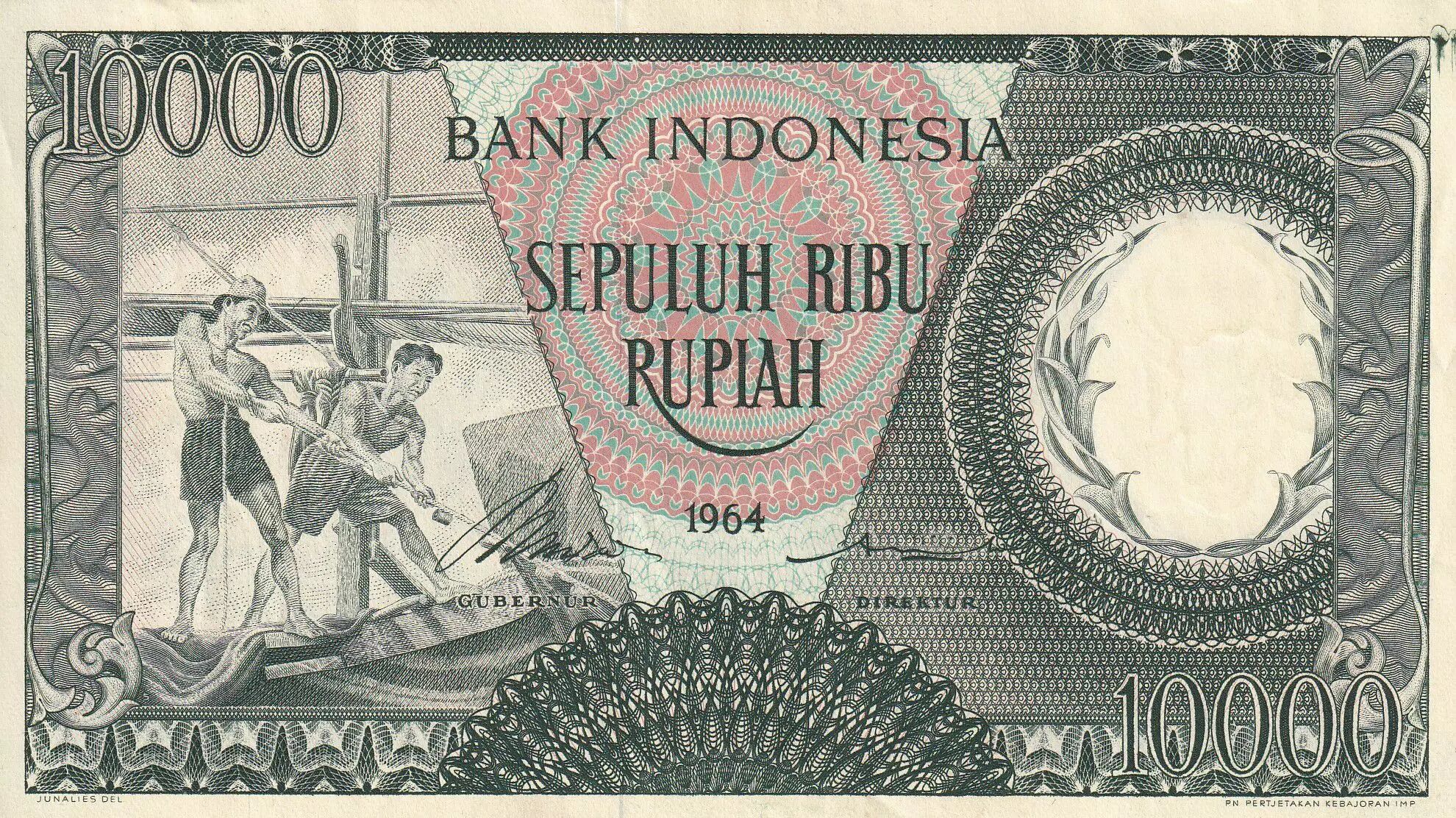 Billet Indonésie 10000 Rupiah - Travailleurs - Rivière - 1964 - Série STJ - P.100a