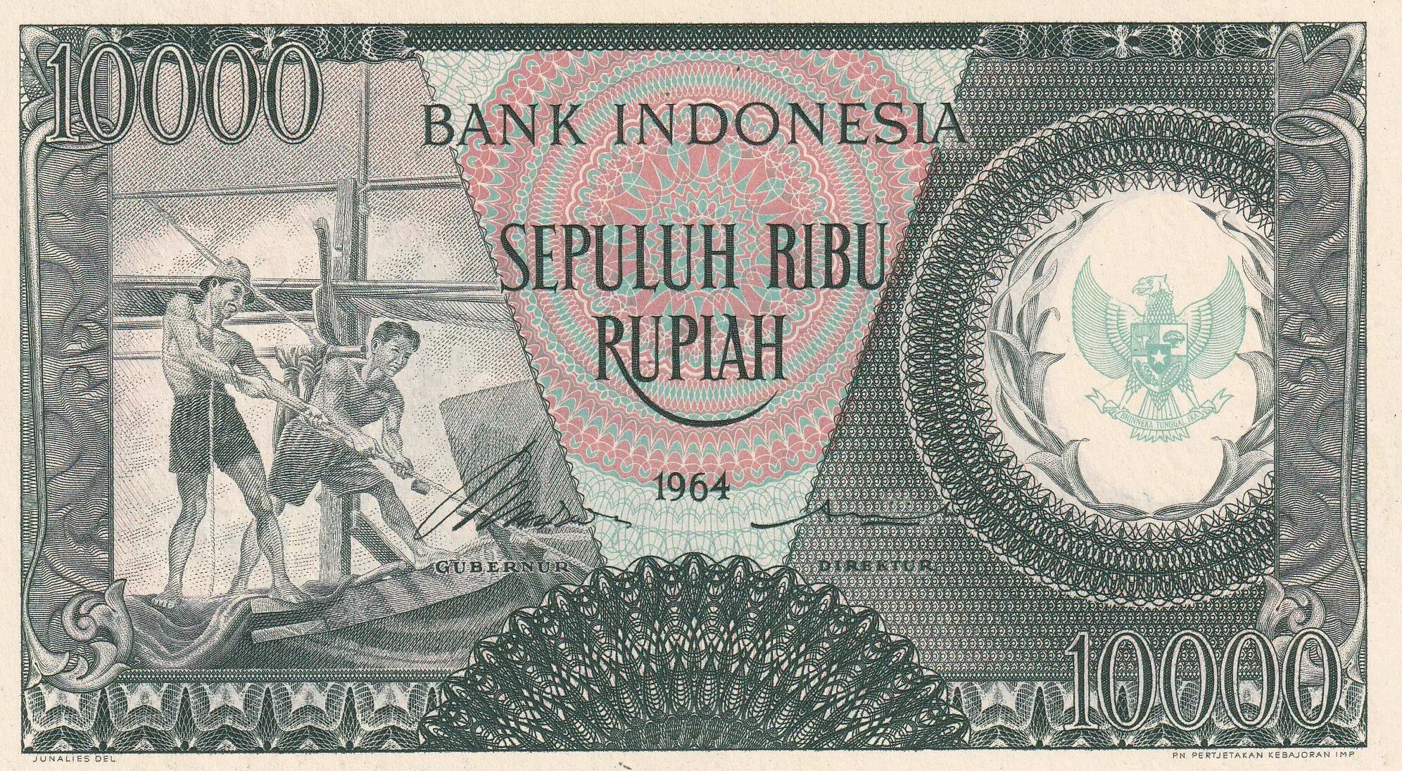 Billet Indonésie 10000 Rupiah - Travailleurs - Rivière - 1964 - Série WWL - P.100b