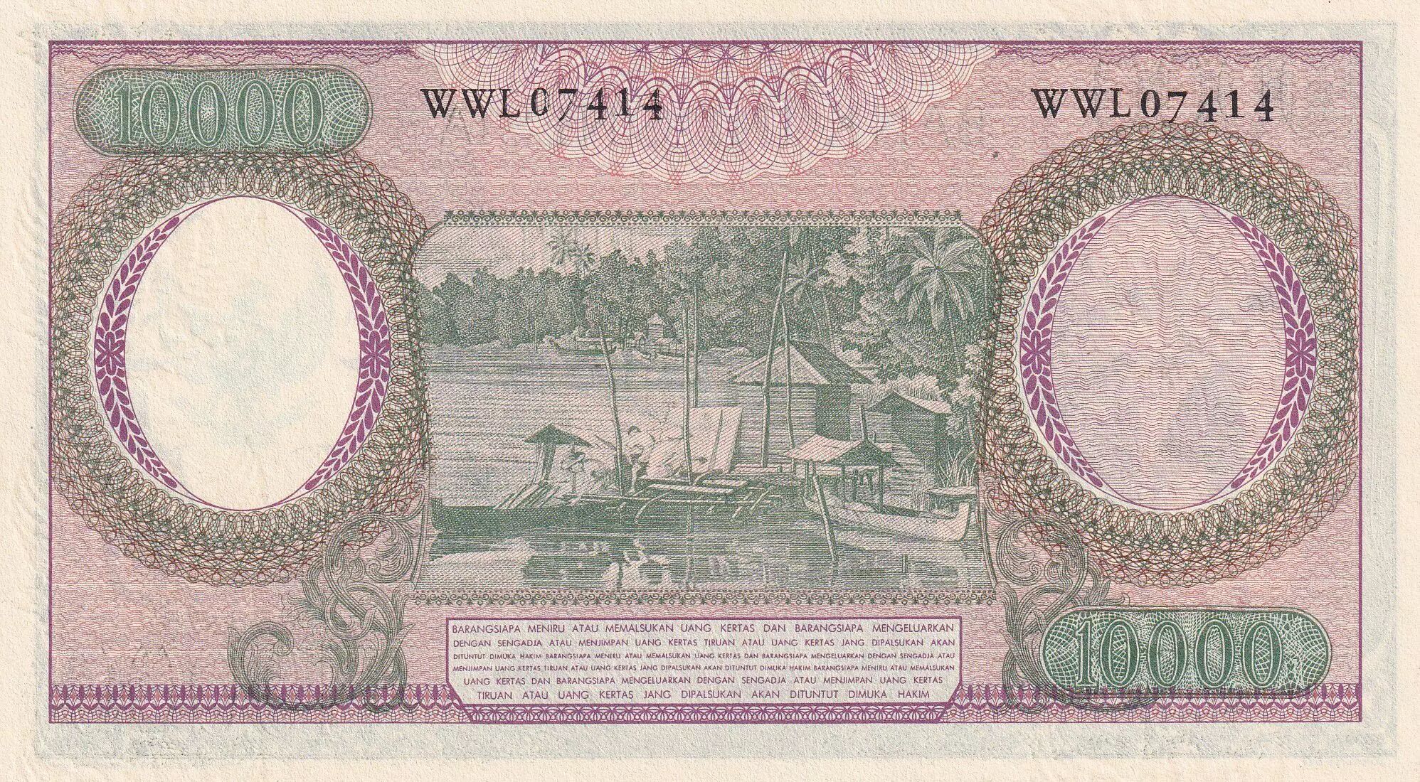 Accueil > Archivage > Indonésie 10000 Rupiah - Travailleurs - Rivière - 1964 - Série WWL - P.100b