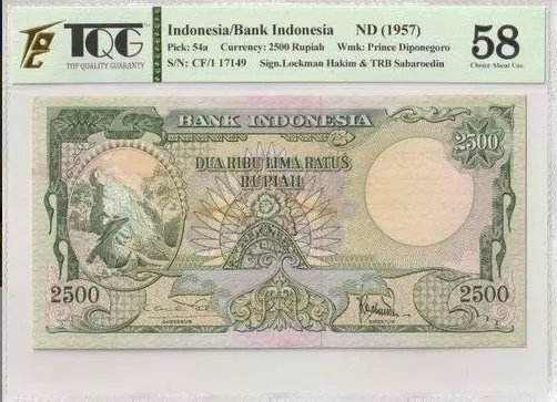 Accueil > Archivage > archivage-Billets du Monde > Indonésie 2500 Rupiah - Dragon de Komodo - 1957 - Série CF/1 17149