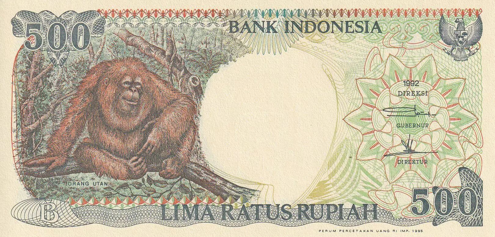 Billet Indonésie 500 Rupiah - Orang Outan - 1992- Série YEU - NEUF - P.128