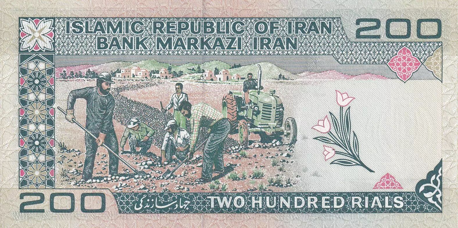 Home > > Iran 200 Rials - Mosque - Farmers & farm tractor - 1982 - UNC - P.136a