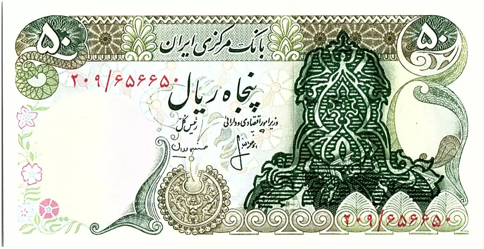 Banknote Iran 50 Rials , Mohammad Reza Pahlavi - Overprint Islamic republic - 1980 - P.111 b