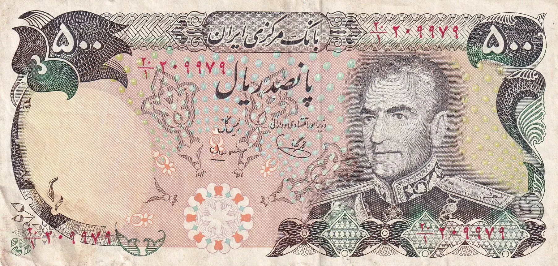 Accueil > Archivage > Iran 500 Rials - Mohammad Reza Pahlavi - ND (1974-1979) - P.104c