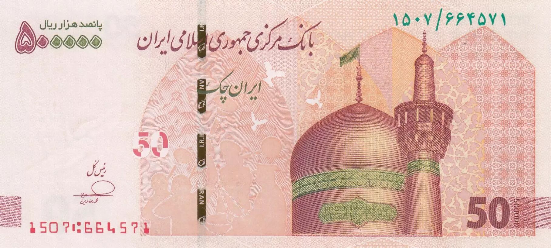 Home > > Iran 500000 Rials - Imam Reza Mosque - Volcano - 2024