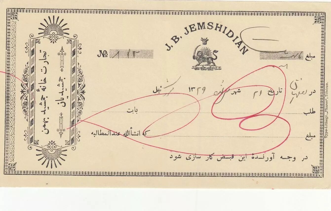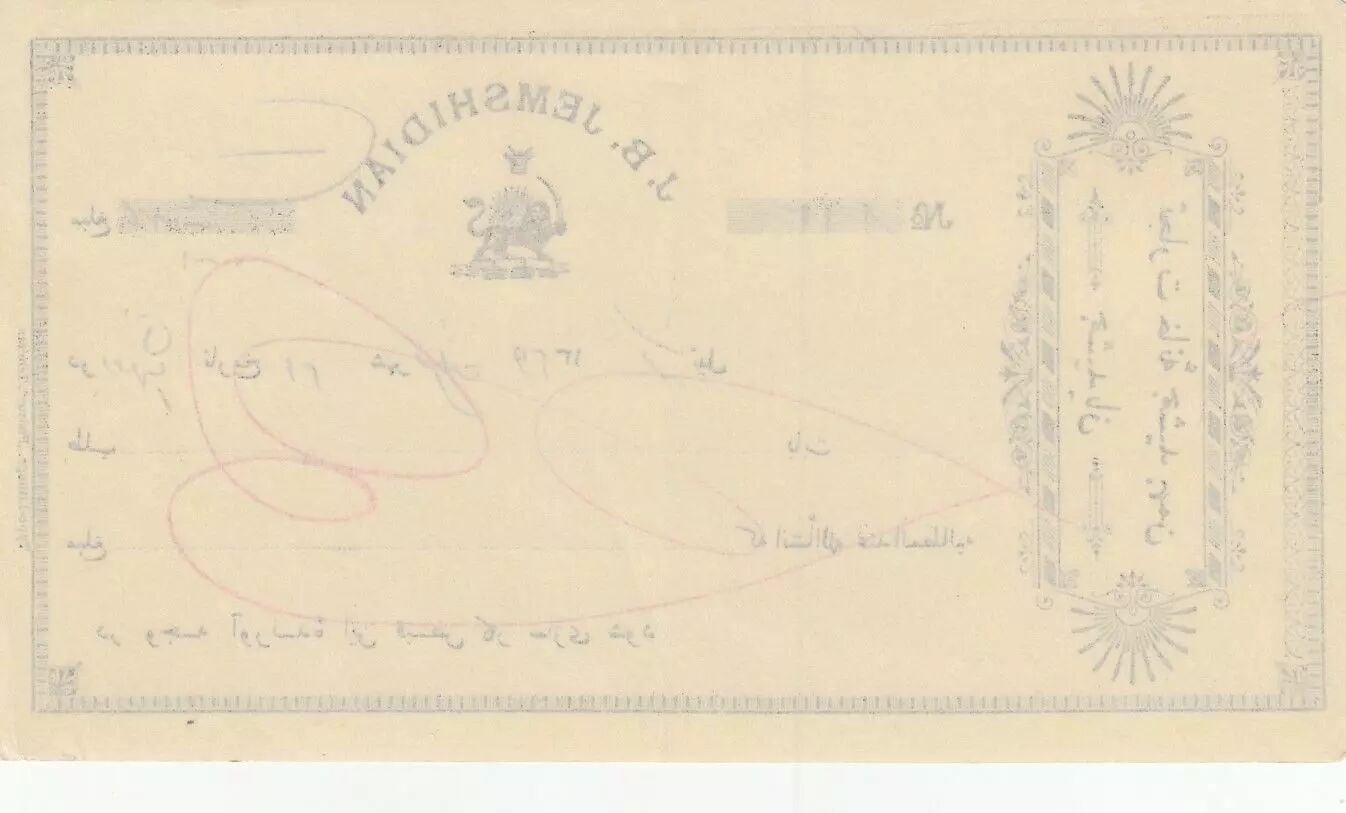 Banknote Iran Bank cheque receipt - J.B Jemshidian - ND