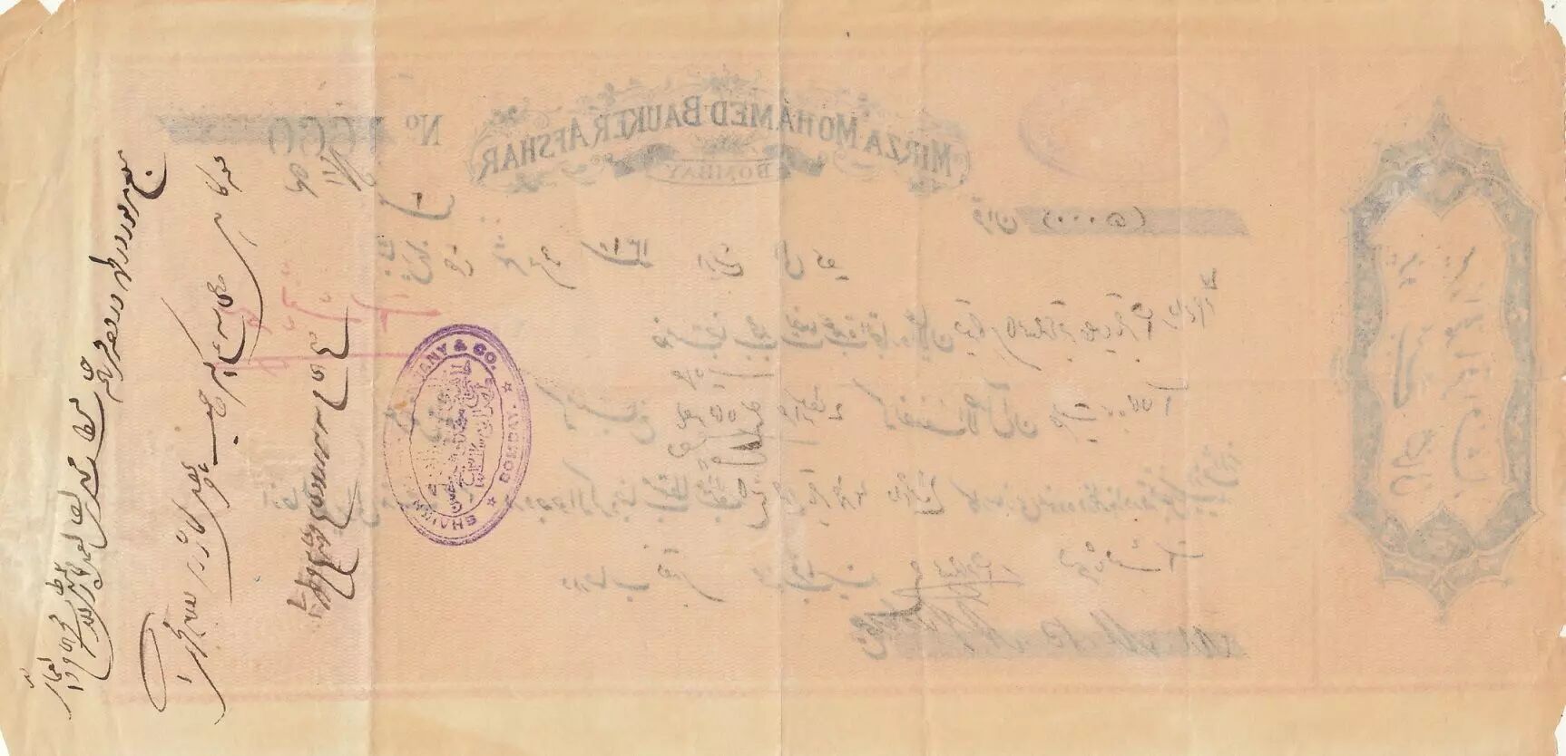Accueil > Archivage > archivage-Billets du Monde > Iran Reçu de chèque de banque - Mirza Mohamed Bauker Afshar - ND