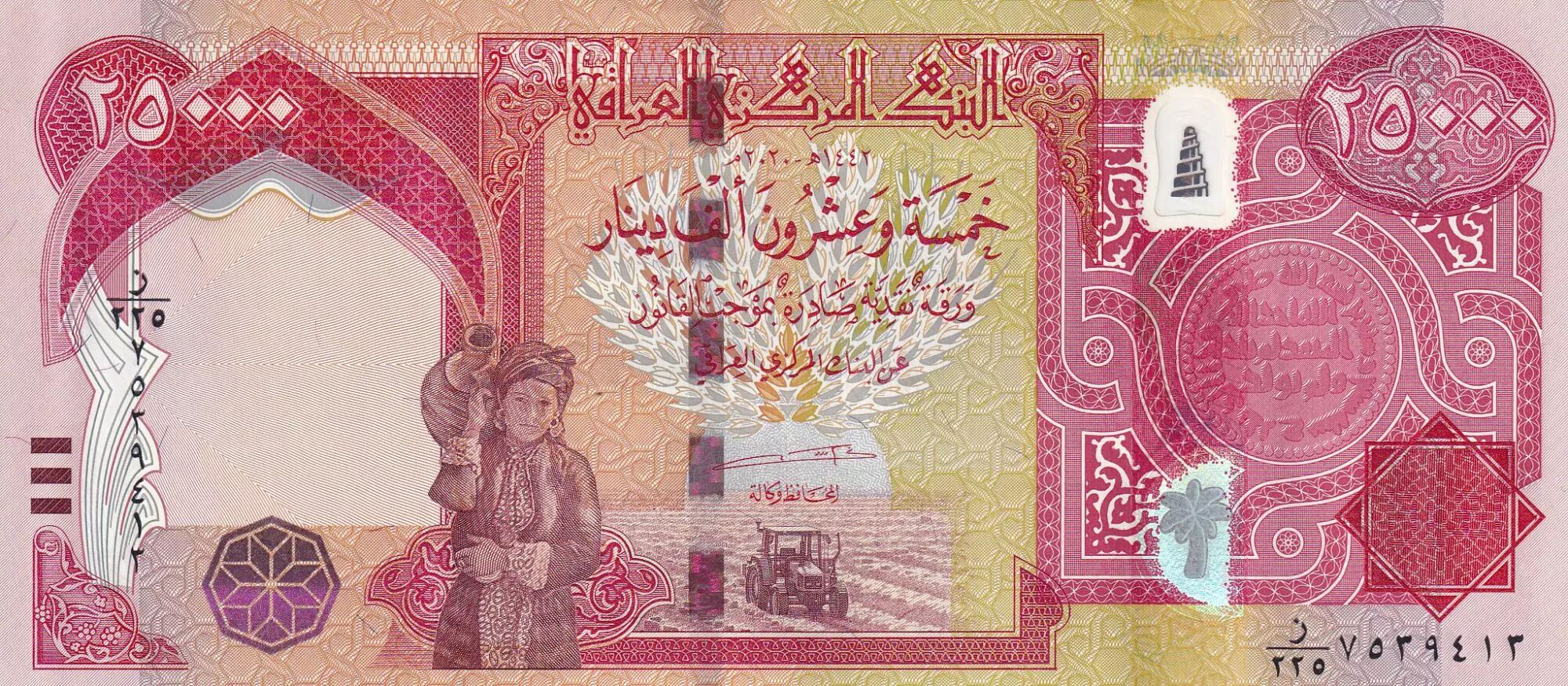 Banknote Iraq 25000 Dinars - Kurdish Farmer - Babylonian king Hammurabi - Hybrid - 2021