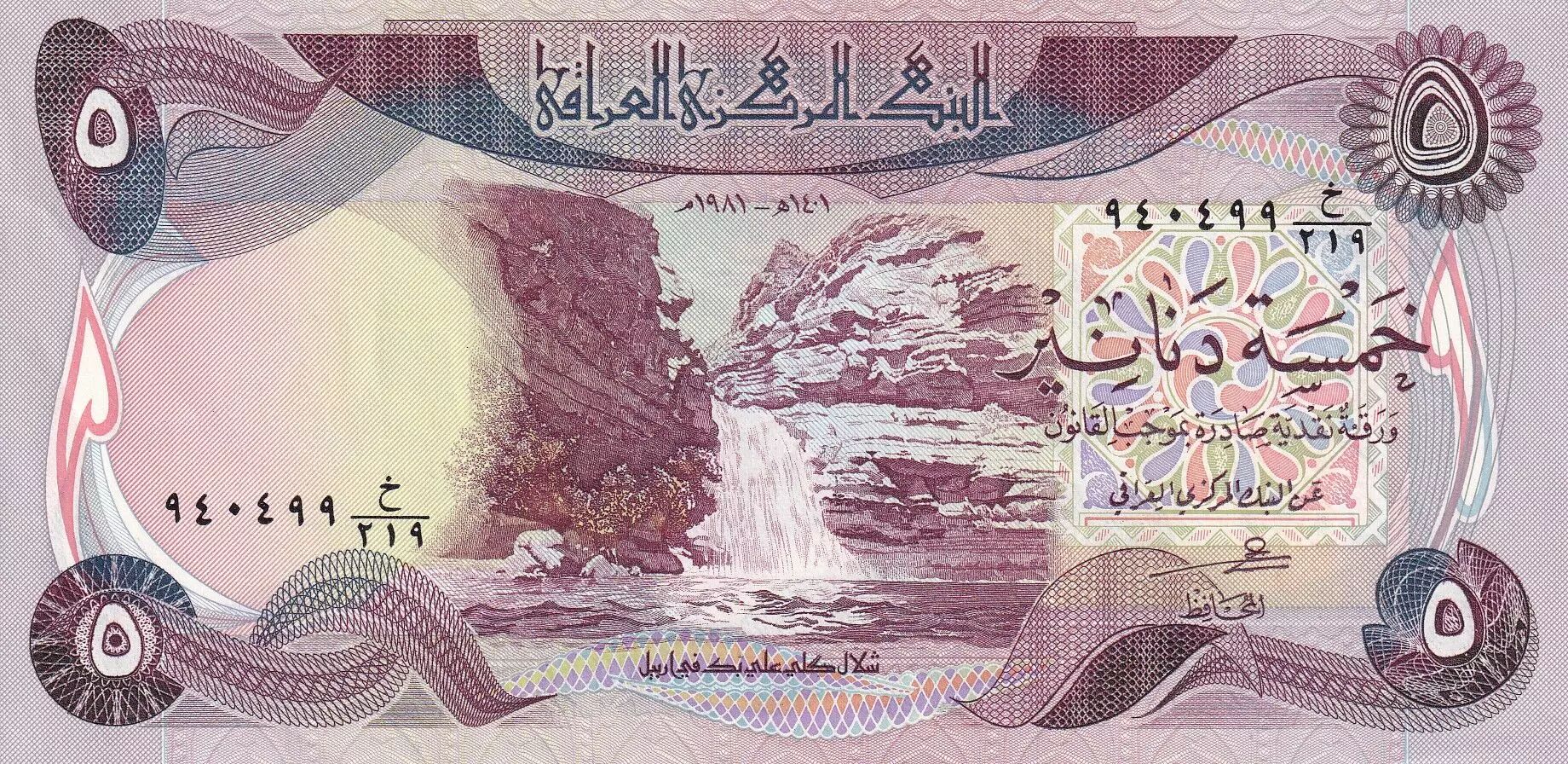 Banknote Iraq 5 Dinars Waterfall Gali-Ali Beg - Castle - 1981