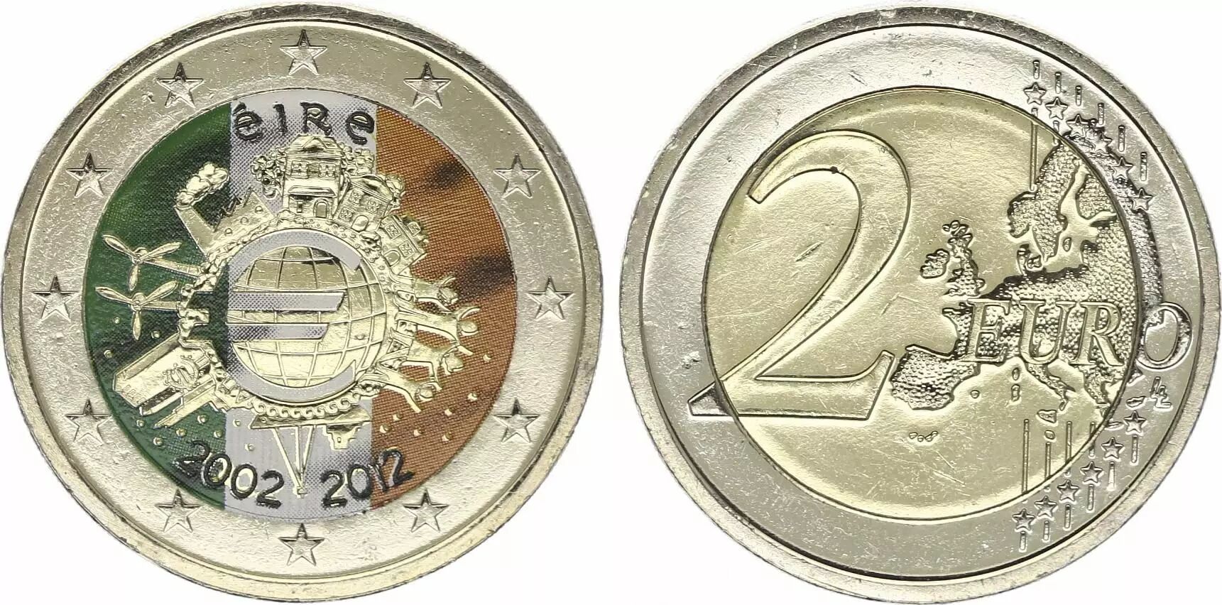 Coin Ireland 2 Euros - 10 years of the Euro - Colorised - 2012