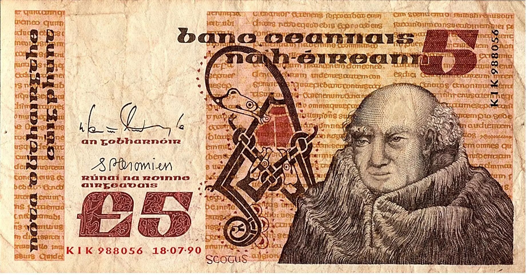 Banknote Ireland 5 Pounds John Scotus Eriugena - 1990 - P. 71 e - F to VF