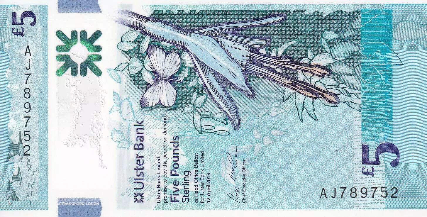 Home > > Ireland - Northen 5 Pounds - Butterfly - Sea - Polymer - 2018 - UNC - P.NEW