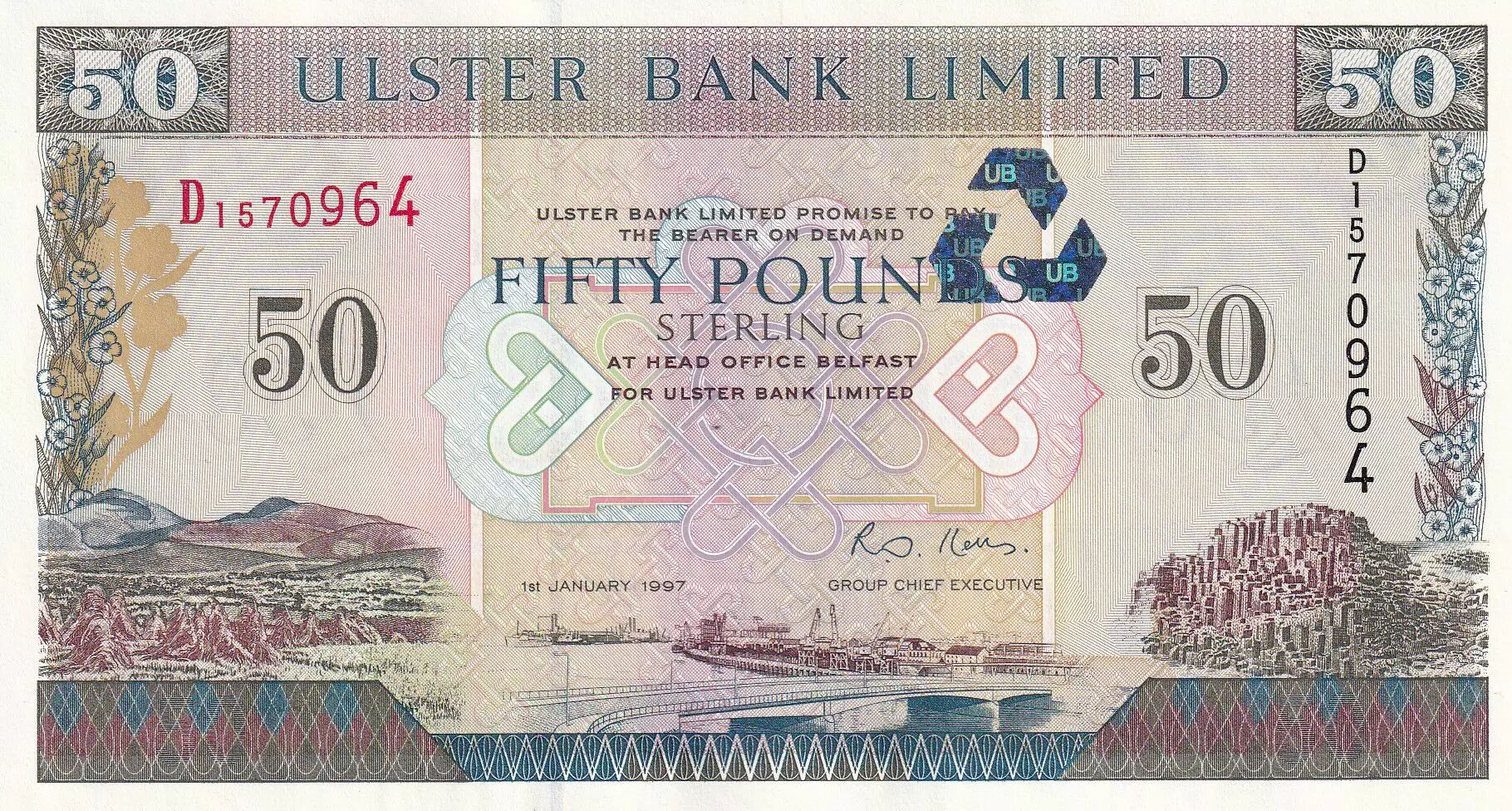 Home > > Ireland - Northen 50 Pounds - Ulster Bank - 1997 - P.338a