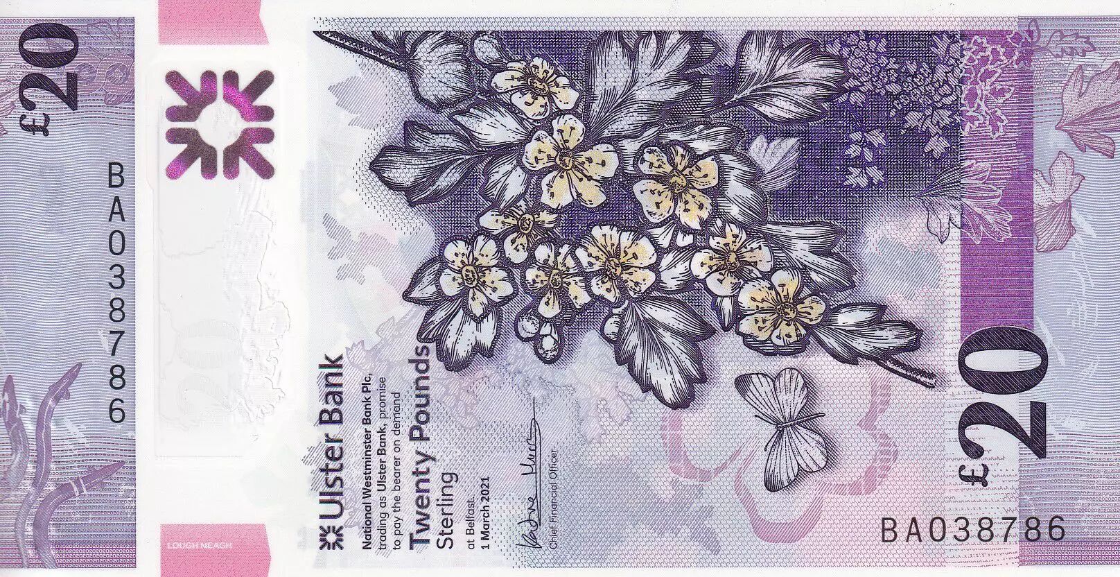 Billet Irlande du Nord 20 Pounds - Fleur - Papillon - Polymer - 2021 - NEUF - P.NEW