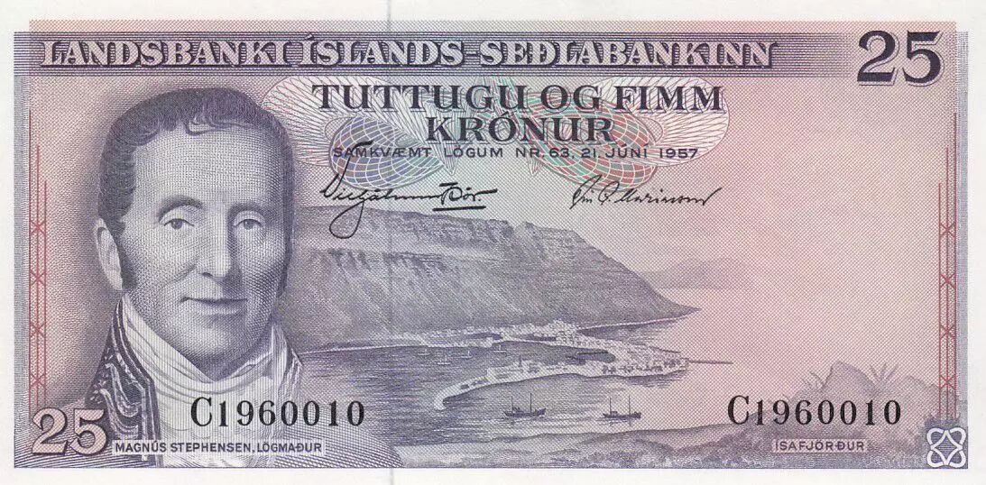 Accueil > Archivage > Islande 25 Kronur - M. Stephensen - 1957