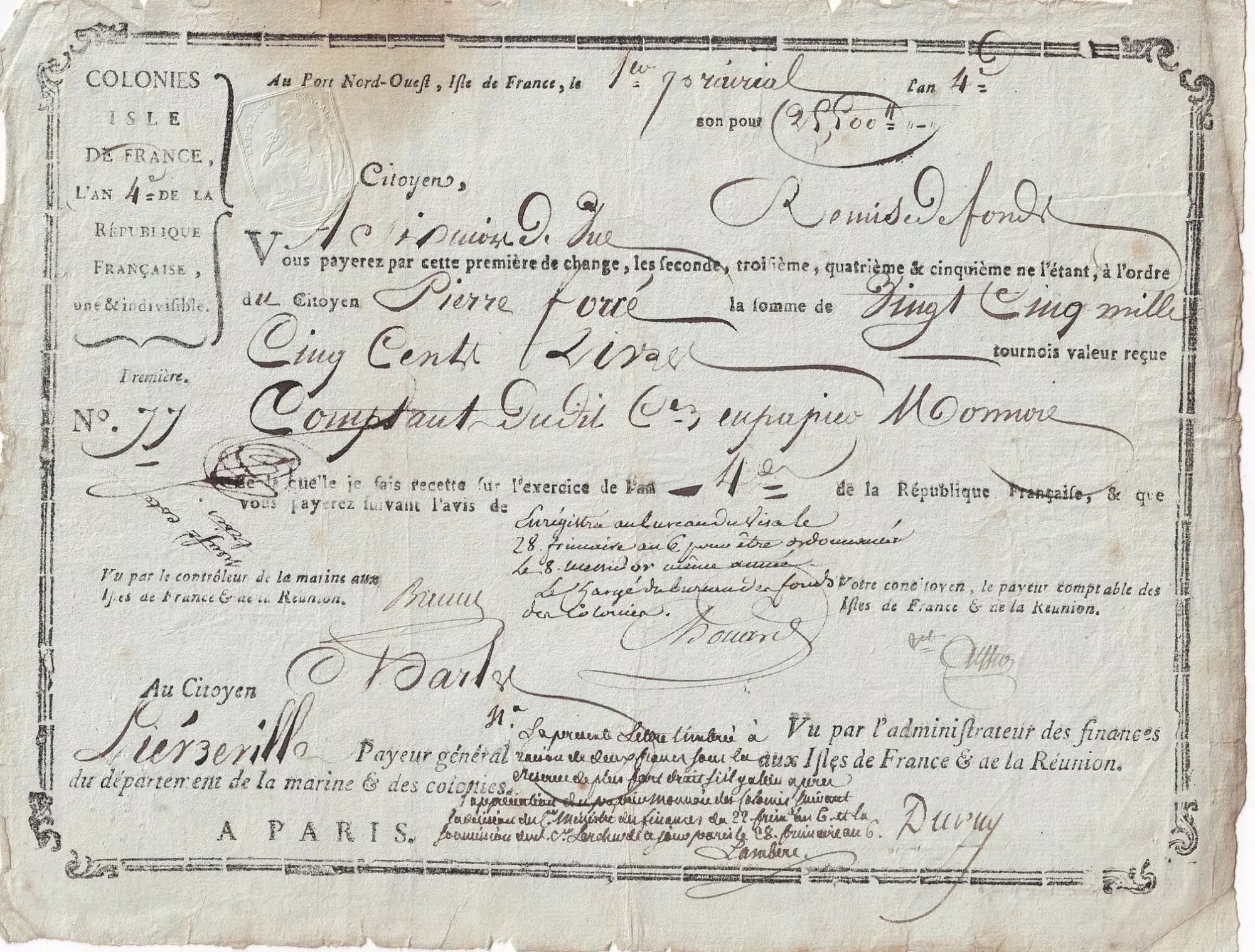 Home > > Isles of France and of Bourbon 25500 Livres, Traite de la Marine et des Colonies - An IV - isle de France et de la Reunion