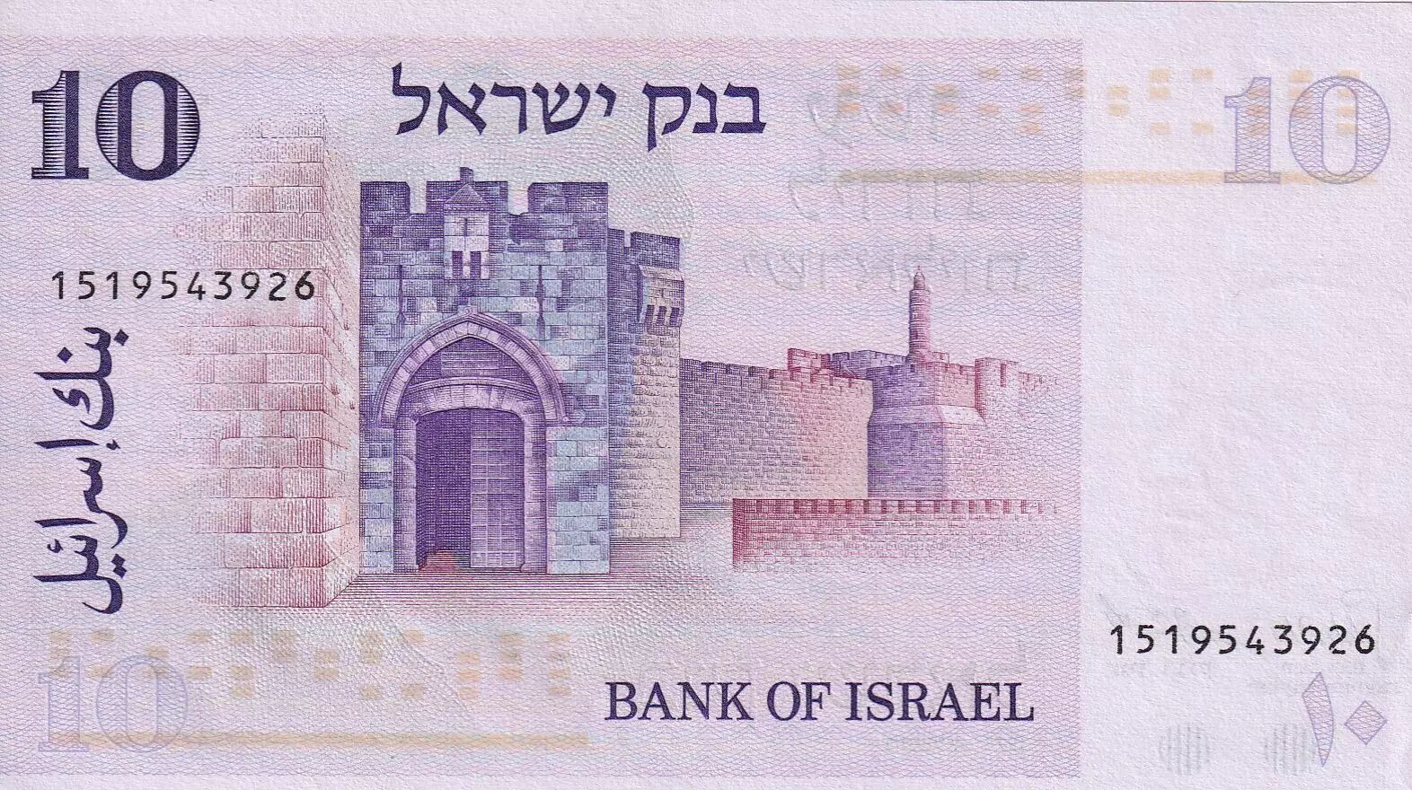 Banknote Israel 10 Lirot - Moshe Montefiore - Jaffa Gate - 1973 - P.39