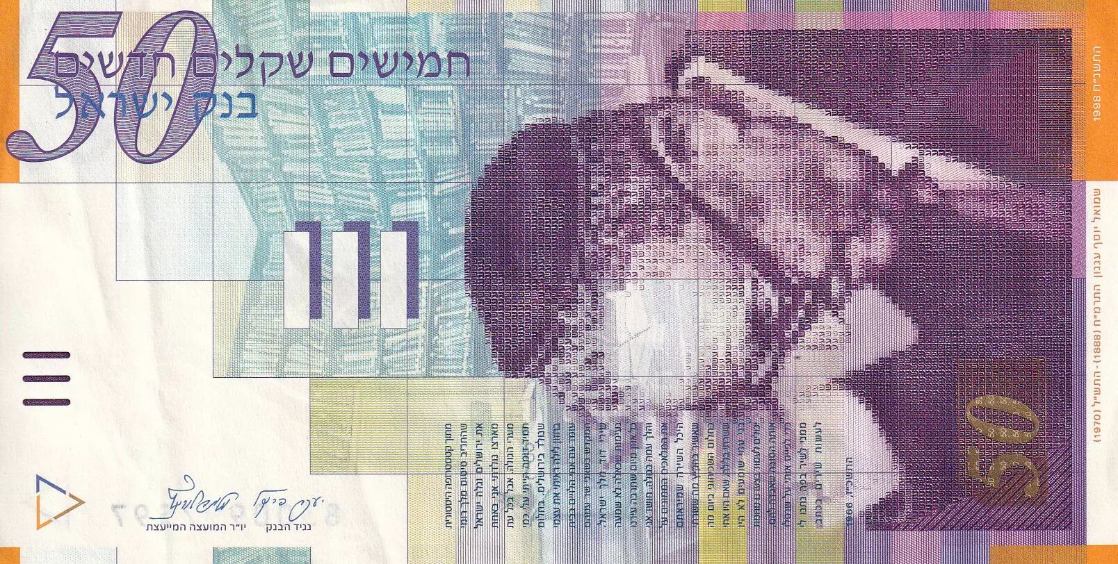 Home > > Israel 50 New Sheqel - Moshe Sharett - 1998 - VF to XF - P.60a