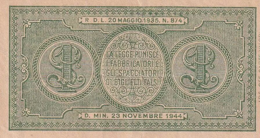 Accueil > Archivage > Italie 1 Lire - Italia - 1944 - P.29a