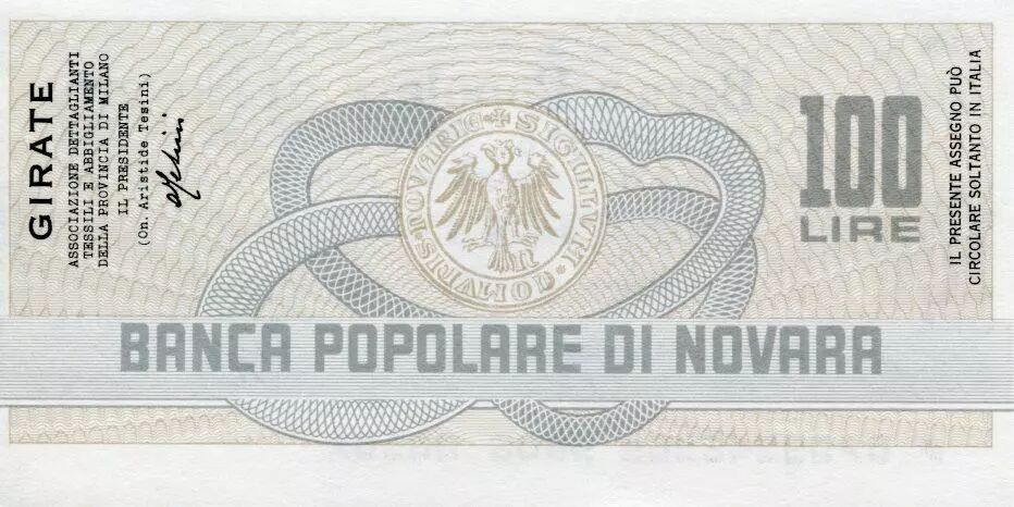 Billet Italie 100 Lire Banco Popolare di Novara - 1977 - Novara - NEUF