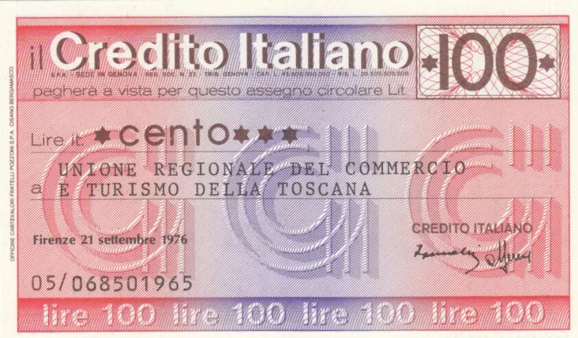 Billet Italie 100 Lires Credito Italiano, 1976 - Toscane- Neuf
